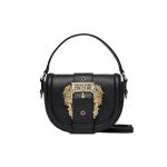 Embrace sleek sophistication with the Versace Jeans Couture “Noir Silhouette” saddle bag. This exquisite black luxury handbag features a distinctive structured design in rich pebbled faux leather. With its versatile top handle and detachable strap for luxury shoulder handbags or luxury crossbody handbags, it’s the perfect designer luxury handbag for the modern woman. A true embodiment of luxury branded handbags, it’s an essential, high-end accessory.
